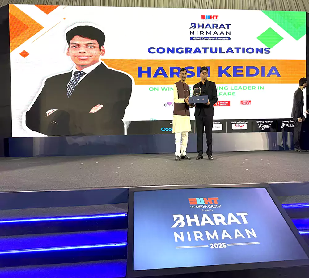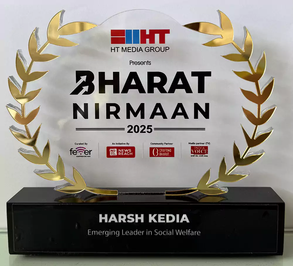 Awarded Emerging Leader in Social Welfare by Hindustan Times on 24th September at the Bharat Nirmaan Awards 2025. The award was presented by Shri Sanjay Seth, Minister of State for Defence.